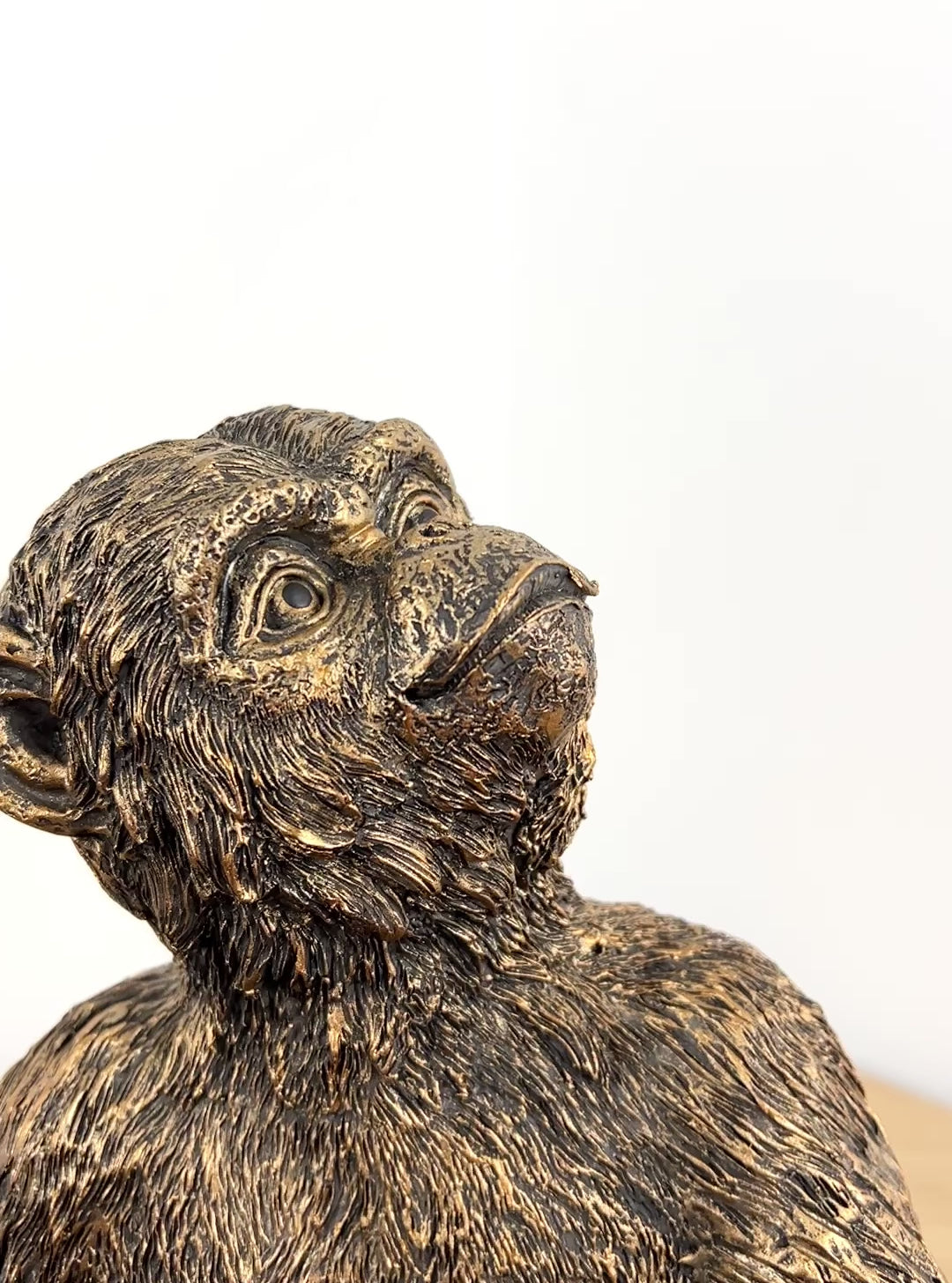 Large monkey ornament wine bottle holder made from resin with a bronze coloured finish. Designed to hold a single bottle of wine. Unique and unusual accessory for home bars, dining rooms and kitchen worktops. Would make a lovely gift for a collector of monkey ornaments or wine drinkers.
